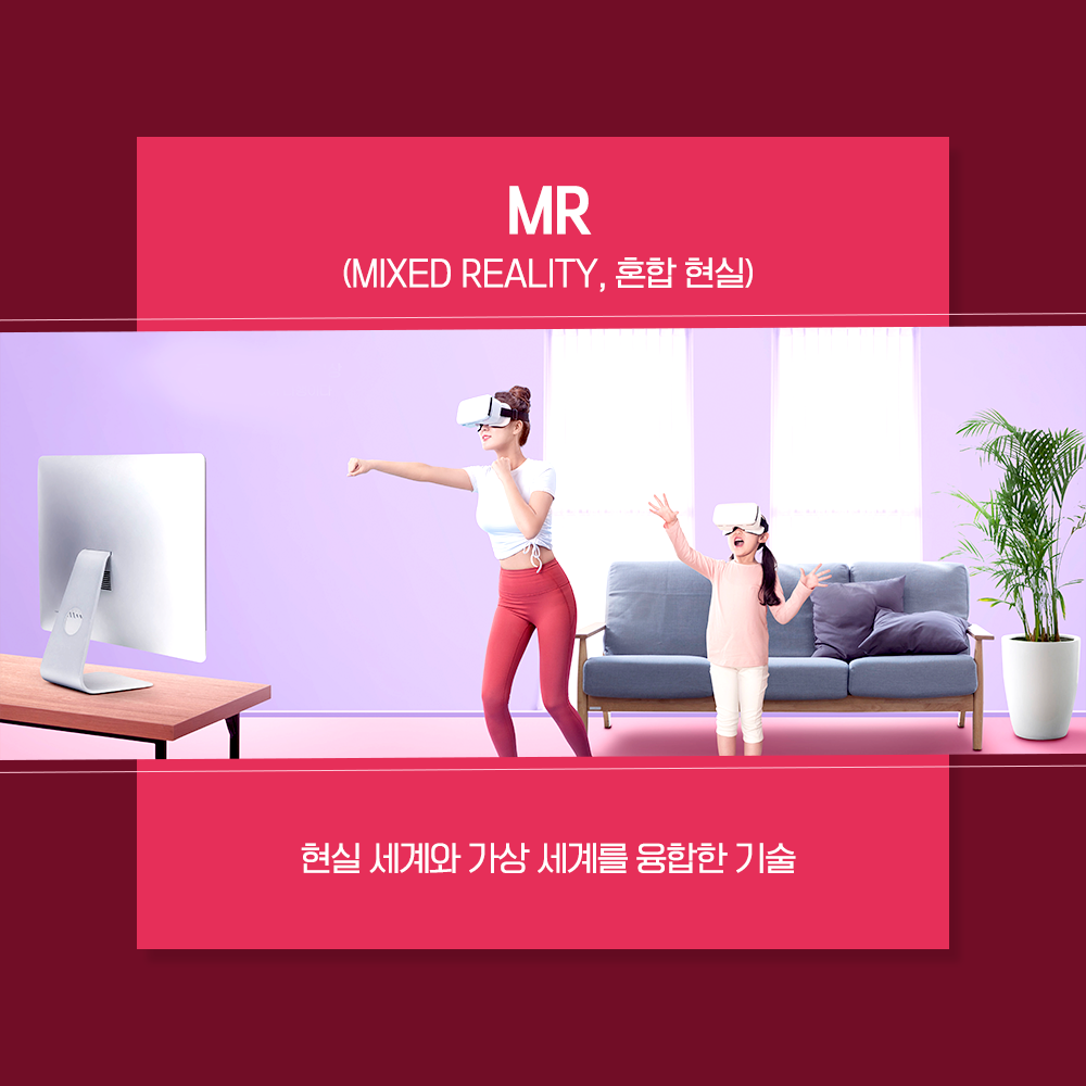 ‘MR(Mixed Reality, 혼합 현실)’은 현실 세계와 가상 세계를 융합하여 가상 객체들이 공존하는 새로운 환경을 만들고 사용자가 실시간으로 상호작용을 할 수 있도록 함으로써 다양한 디지털 정보들을 몰입할 수 있는 환경을 제공하는 기술입니다.