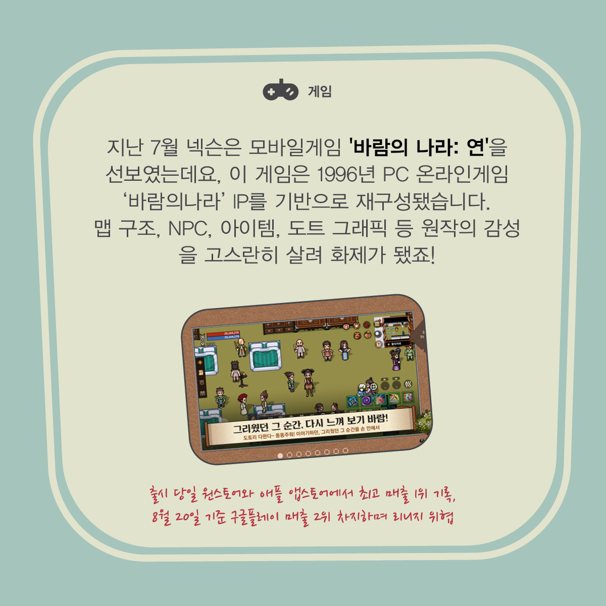 지난 7월 넥슨은 모바일게임 '바람의 나라: 연'을 선보였는데요,
