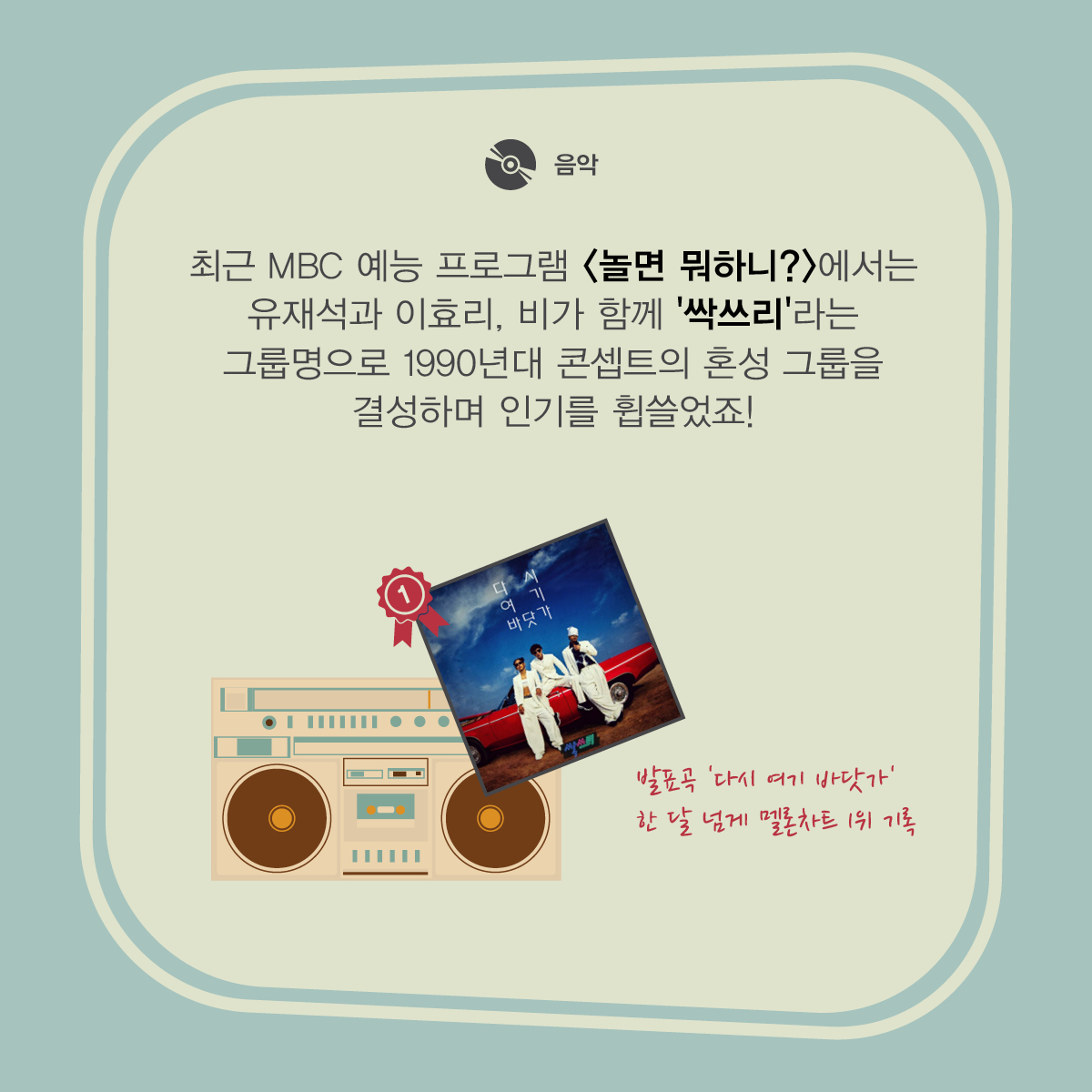유재석과 이효리, 비가 함께 '싹쓰리'라는 그룹명으로