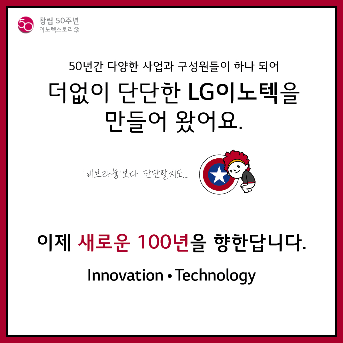 50년간 다양한 사업과 구성원들이 하나 되어 더없이 단단한 LG이노텍을 만들어 왔어요.