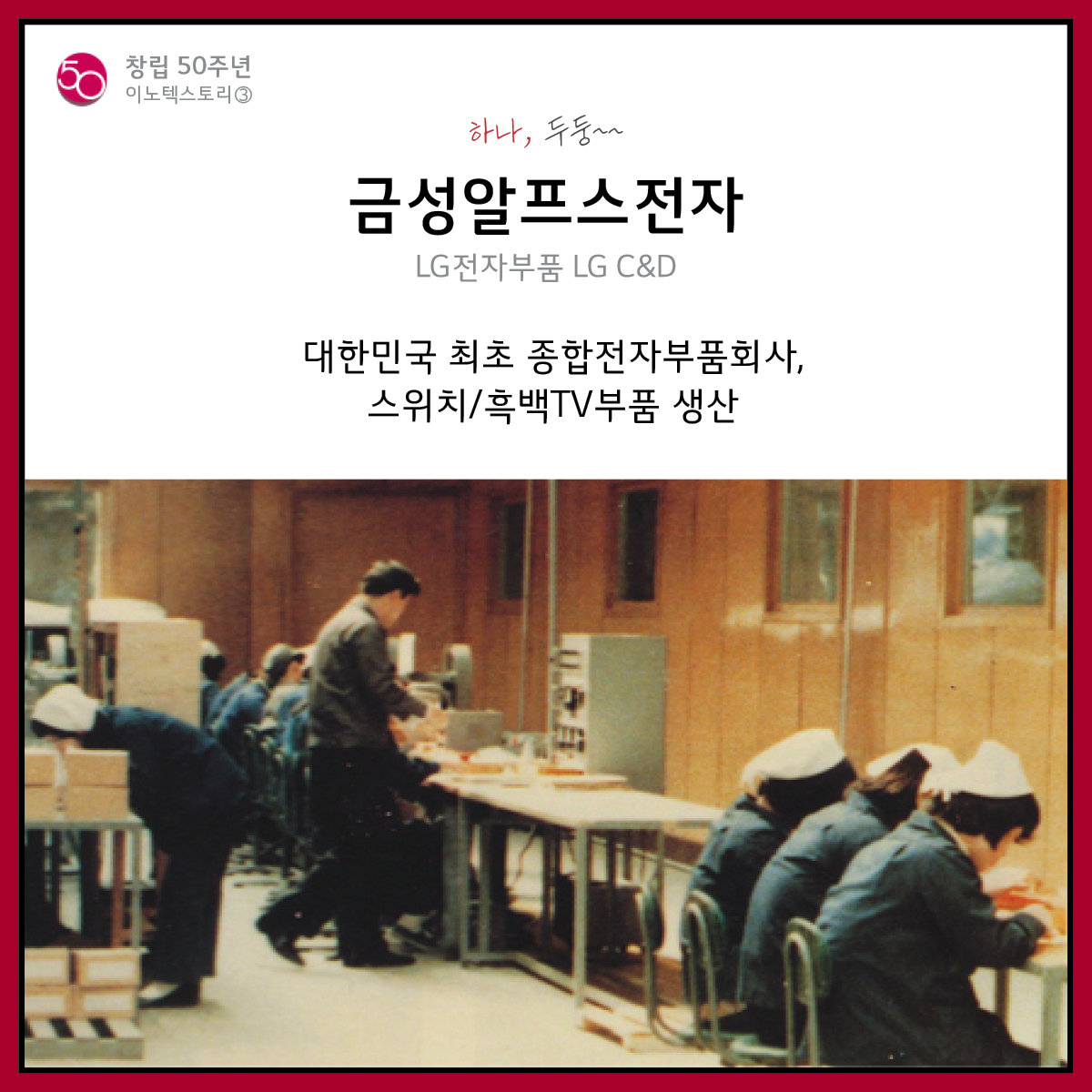 1970 금성알프스전자 → 1995 LG전자부품 (사명변경) → 1998 LGC&D (사명변경)