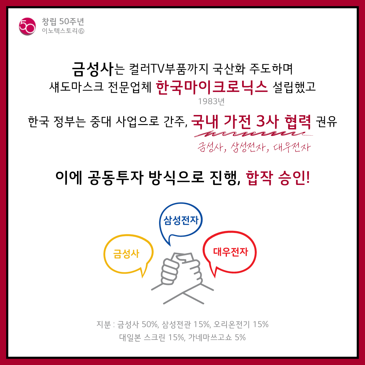 지분 : 금성전자 50%, 삼성전관 15%, 오리온전기 15%,